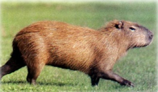 carpincho: Mamífero roedor, que habita a la orilla de los ríos y lagunas del centro-este de América del Sur, alimentándose con frutas, semillas, hojas y raíces de las plantas. Alcanza un metro de largo y un centenar de kilogramos de peso, siendo el mayor de los roedores existentes. Tiene un pelaje uniforme, de color pardo obscuro, sin cola.